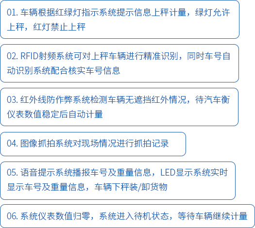 按功能性劃分,主要由以下幾個小系統組成:數字式電子汽車衡系統,RFID射頻系統,圖像抓拍與視頻監控系統,紅綠燈指示系統,語音提示系統,稱重管理系統等。